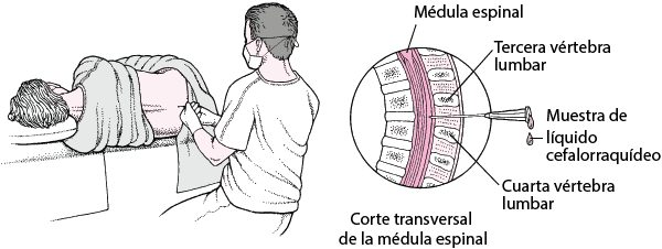 La obtención se puede realizar por punción lumbar, cisternal o ventricular (ventriculostomía). Sin embargo, el LCR se recolecta rutinariamente por punción lumbar entre la tercera y cuarta vértebra lumbar, o entre la cuarta y quinta vértebra lumbar, con el paciente sentado o acostado. Es un procedimiento invasivo y estrictamente médico que se realiza con una previa evaluación clínica para descartar hipertensión endocraneana. Se utiliza una técnica aséptica que prevenga la introducción de infección y daño al tejido neural.